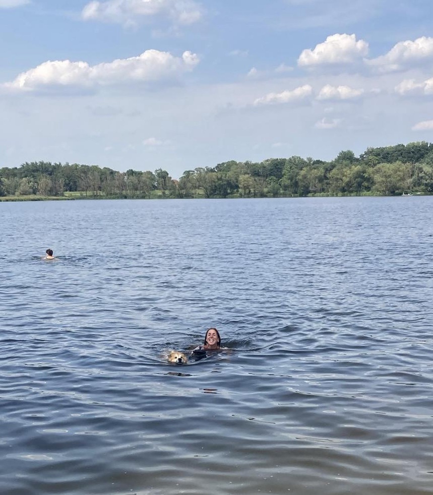 Først kom vi frem til en skøn sø med egen hundestrand hvor Balder tonsede rundt i vandet med tre andre hunde og svømmede med mig:-)