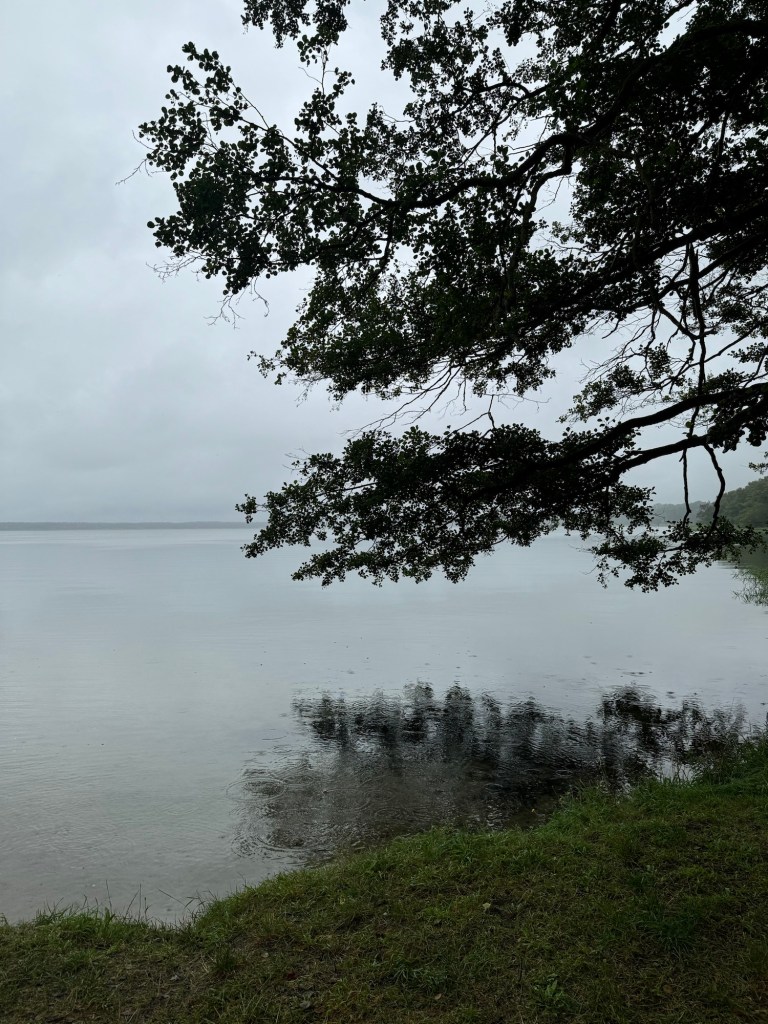 Sov ganske fint helt til 7.30 og lå lidt og vågnede langsomt. Løbetøj på og efter en kop kaffe, afsted i let regn. Så lækkert med afkøling i søen efter turen rundt om søen hvor Mark og Balder gik mig i møde og vi fulgtes det sidste stræk hjem.