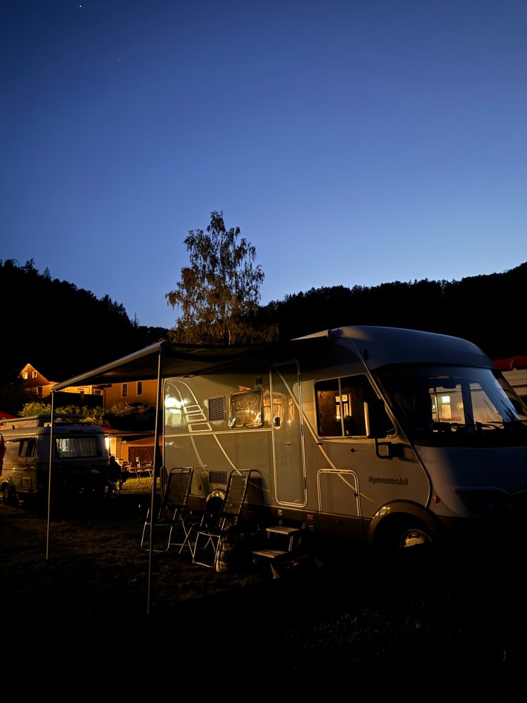 Ca 19.30 forlod vi Bastei efter hundeaffodring og kørte en lille halv time til den campingplads, vi havde udset os. Den ligger tæt ved Bad Schandau som vi vil udforske i morgen.