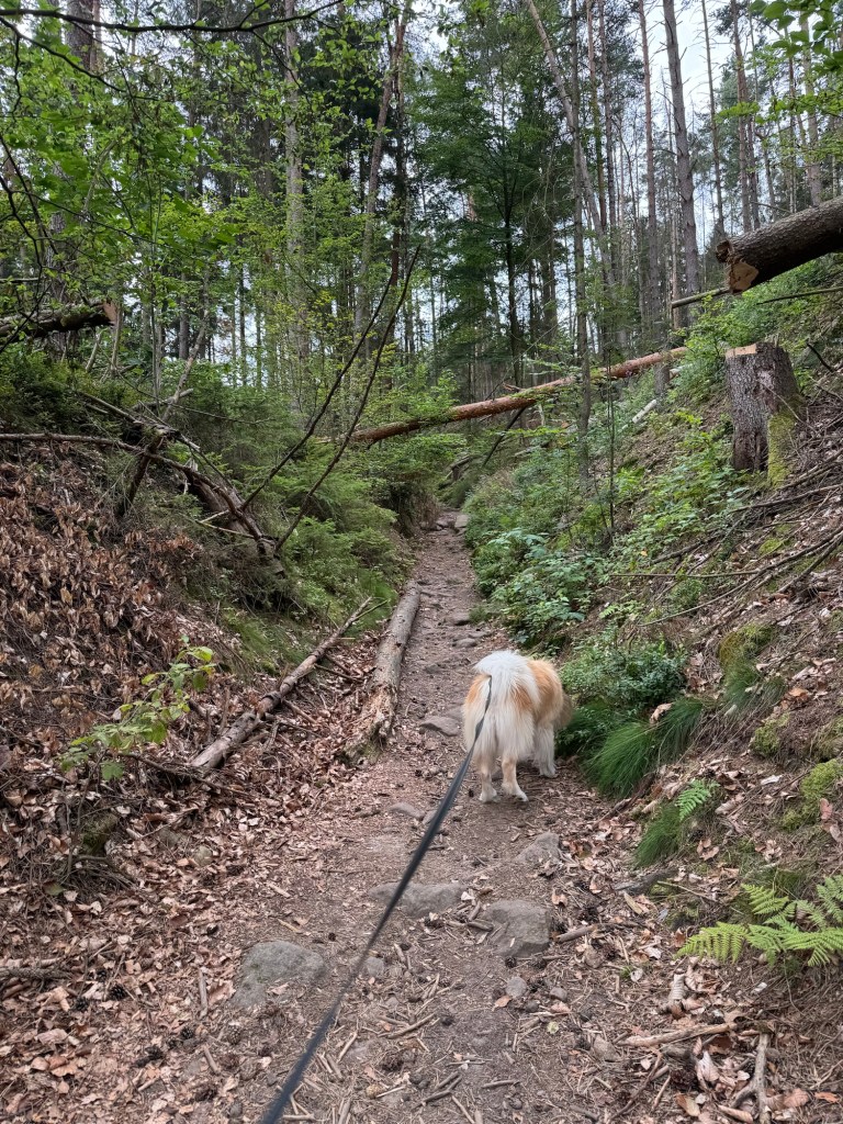 Frisk tysk pap morgenbrød indtaget i skovrige omgivelser. Mark nappede først et bad hvorefter vi begav os ud på et lille morgen-hike op af skrænten og ind i nationalparken.