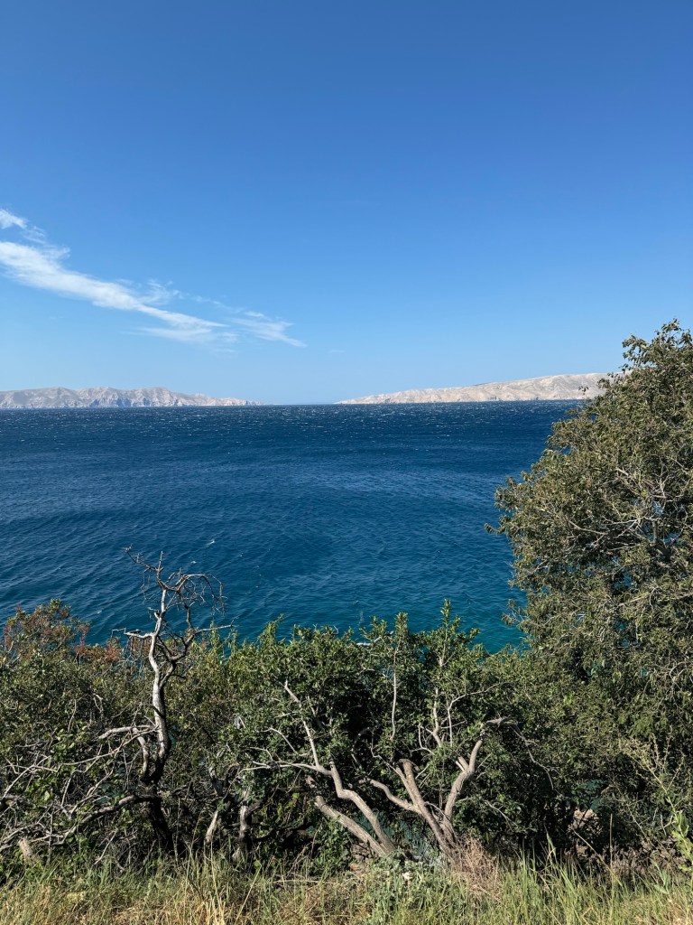 Vi kom ud til kysten, Adriaterhavet ved middagstid og sad lidt i kø igennem byerne og over broen til Krk.