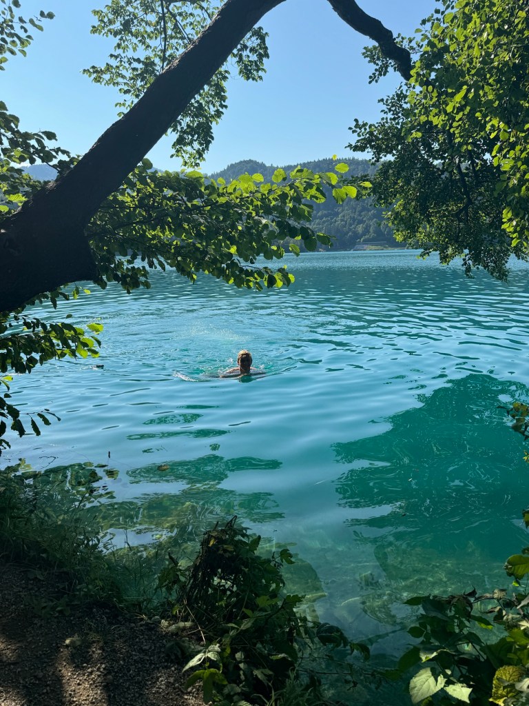Vi gik rundt om søen – 6 km – og først var det virkelig turistet men der var passager hvor vi gik for os selv, og kunne hoppe i søen og bade!