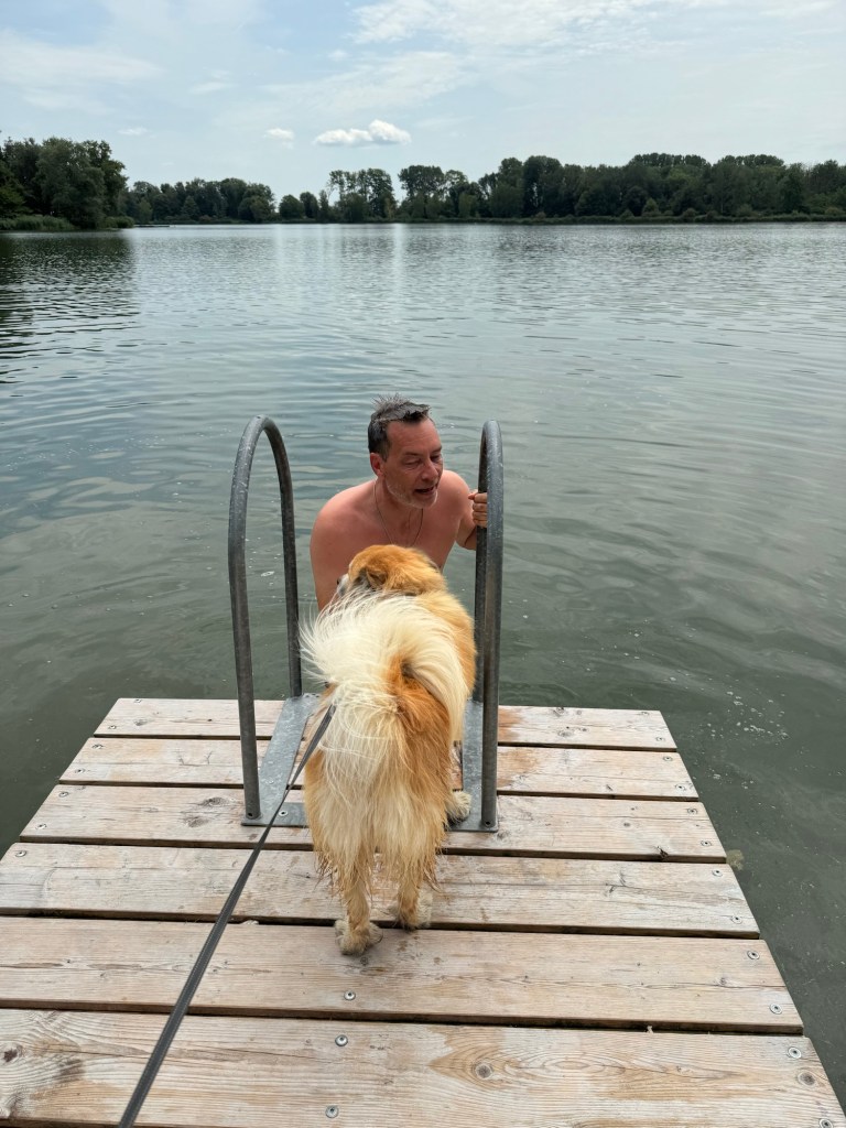 Balder elsker alt ved at vi kan bade hele tiden. Både fra søbredden og fra bro.
