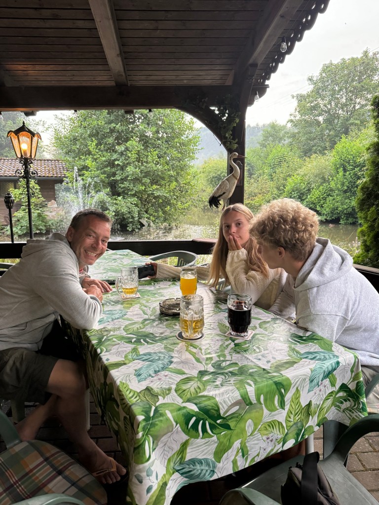 Vel ankommet til den sjoveste lille plads med ganske få pladser – og primært fastliggere – nok pga af den sjove biergarten fik vi serveret ekstrem god mad og virkelig skøn øl, faldt vi ned i gear.