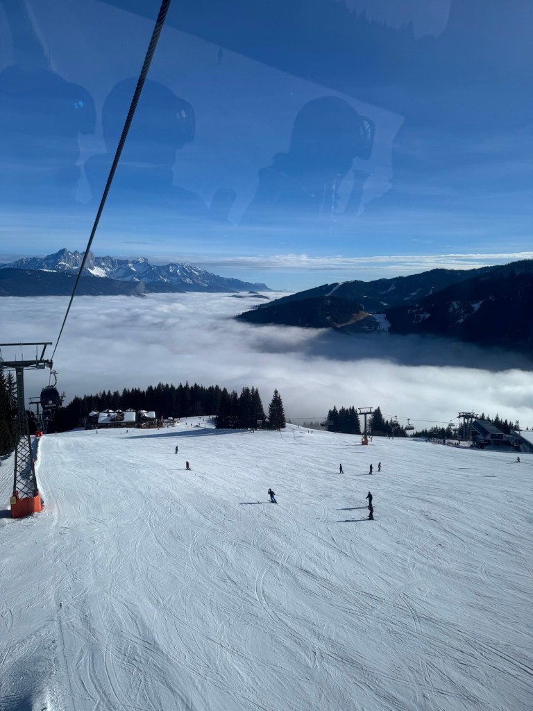 Vi kørte til Achterjet, samme sted som den første morgen og satte kursen mod St. Johann og Alpendorph. Det var skyet i dalen og vi var spændte på vejret som vi kom op – heldighvis var der skyfrit 3-400 m oppe.
