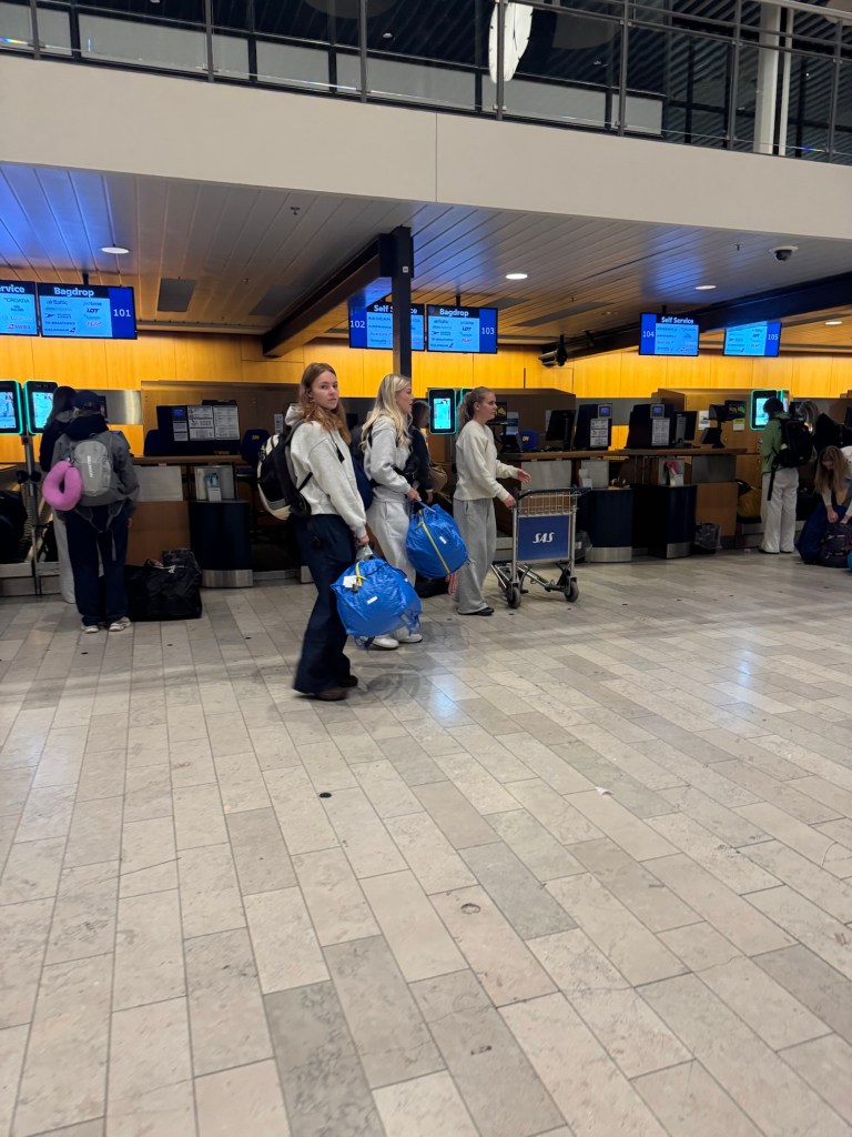 Søndag morgen tidlig satte vi vores bil i stines indkørsel og hoppede over i en Uber. Glat igennem lufthavnen med det vanlige sæt fra lagkagehuset og så afsted til tiden.