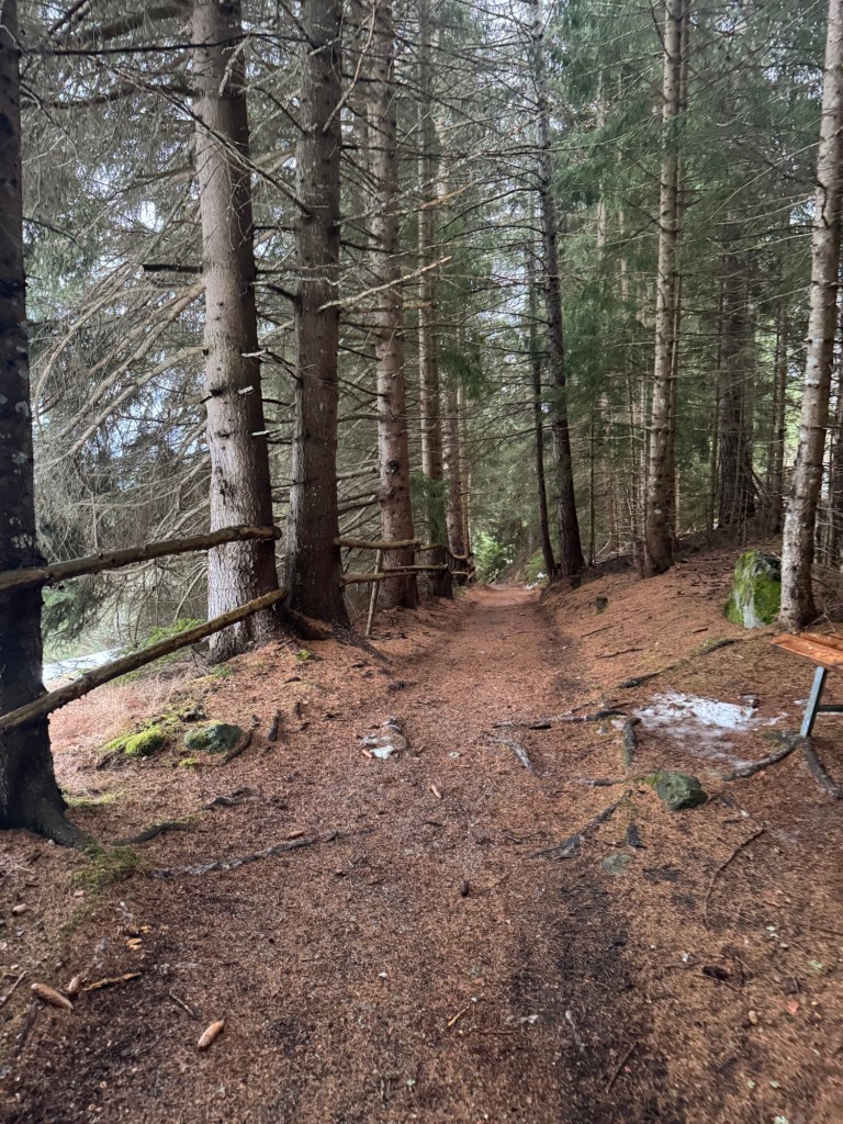 Alligevel fik jeg løbebukser på og fandt en stejl skovrute – ikke lang men udfordrende og nappede 4 km på lige under en halv time.